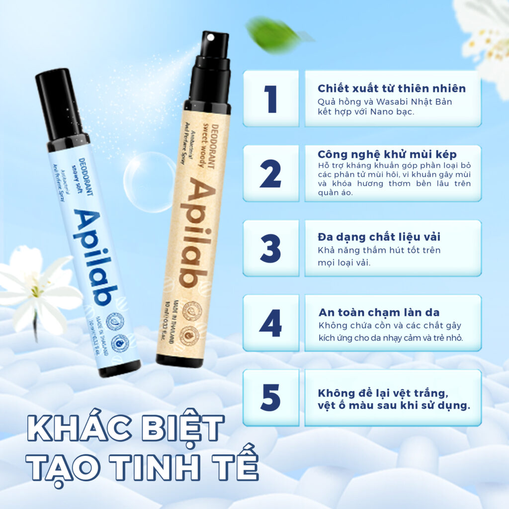 Apilab tự hào giới thiệu dòng sản phẩm xịt khử mùi và tạo hương thế hệ mới, lần đầu tiên có mặt tại Việt Nam. Được phát triển từ nguồn nguyên liệu tự nhiên, kết hợp cùng công nghệ tiên tiến và các phòng thí nghiệm hàng đầu thế giới, sản phẩm của chúng tôi mang đến sự an toàn và hiệu quả cho người Việt.