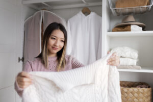 Khi quần áo đã khô ráo hoàn toàn và được xếp, treo gọn gàng trong tủ quần áo cũng là lúc chúng ta thêm hương cho chúng. Ướp hương với hoa khô, thảo dược,.. giúp quần áo tránh tình trạng xuất hiện mùi khó chịu sau một thời gian bỏ trong tủ. Thêm vào ngăn tủ quần áo một túi nhỏ chứa loại thảo mộc bạn yêu thích hoặc treo trên móc để quần áo thêm thơm mới.